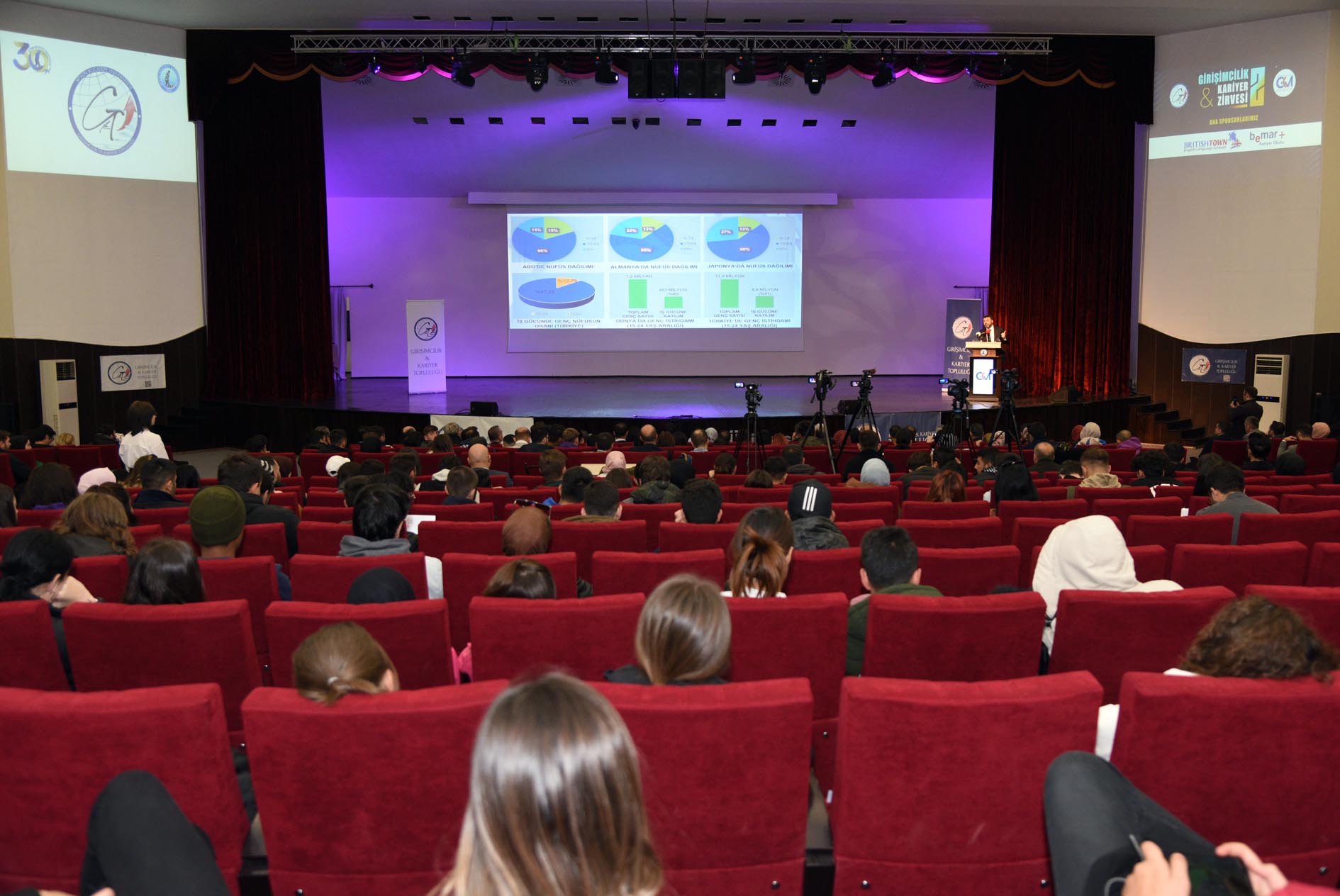Türkiye’de 81 ilde KOSGEB’in olduğunu ve girişimcilere, gençlere destek verdiğini belirten Kurt, “Çok genç bir nüfusumuz var. 15 – 64 yaş grubu uluslararası istatistikler açısından baktığımızda toplumun yükünü çeken, toplumu taşıyan hem inovasyonuyla hem iş gücüyle hem yönetimsel kadrolarıyla idare kadrolarıyla toplum nüfusunu taşıyan bir grup” diye konuştu. Gençlerin, inovatif bakış açısı ve girişimci ruhunun çok önemli olduğunu belirten Kurt, “Eğer bununla bununla ilerleyecek olursak gerçekten Türkiye dünyadaki ülkelere göre ciddi fark alacak bir pozisyonda. Türkiye bugün savunma ile kimya sanayinde geldiği seviye anlamında ve aynı zamanda bilişim sektöründe gerçekten çok çok ileri bir noktada. Türkiye’de bundan 5-6 yıl önce 10 kişinin 15 kişinin kurmuş olduğu bir bilişim firmasının milyar dolar değerlemeye ulaşacağını söylüyor olsaydık bu salonda belki hiç kimse bize inanmayacaktı. Ama bugün bunlardan tam altı tane var” ifadelerini kullandı.