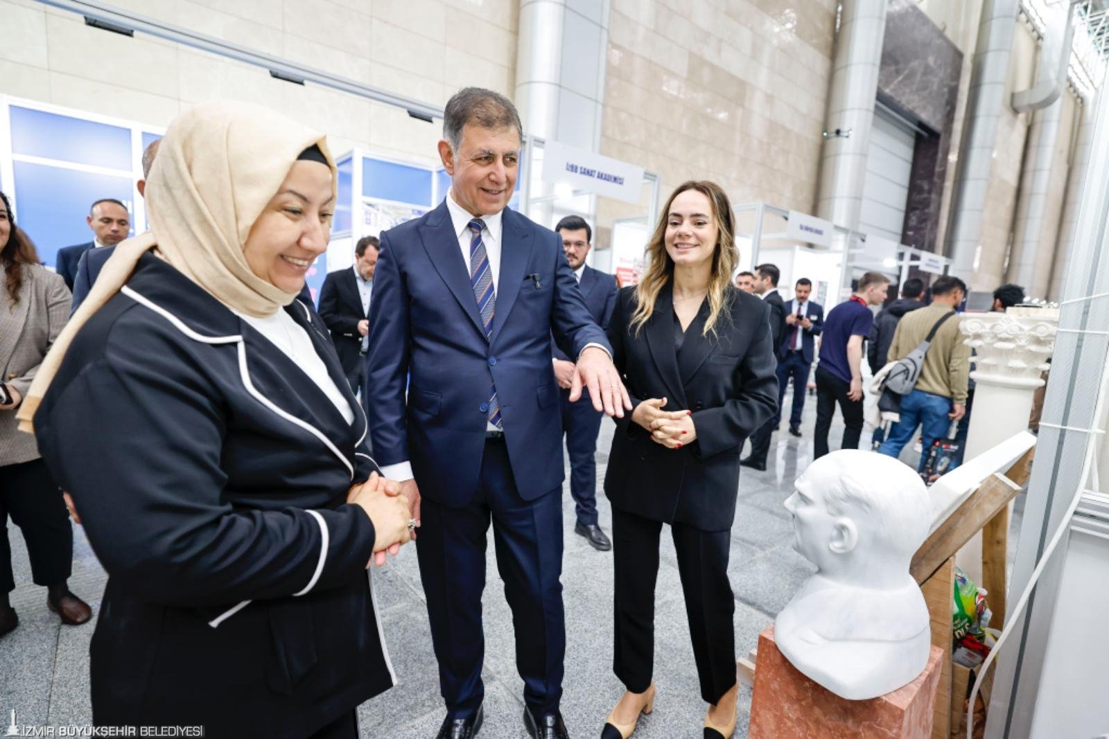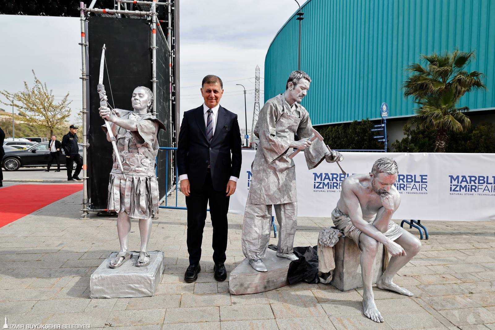Dünya doğal taş sektörünün öncü buluşması Marble İzmir – Uluslararası Doğaltaş ve Teknolojileri Fuarı, 31’inci kez kapılarını açtı. İzmir Büyükşehir Belediyesi’nin ev sahipliğinde, İZFAŞ tarafından Fuar İzmir’de düzenlenen 31. Marble İzmir, sektörün profesyonellerini bir araya getirdi. Açılış törenine İzmir Büyükşehir Belediye Başkanı Dr. Cemil Tugay ve eşi Öznur Tugay’ın yanı sıra Ticaret Bakanı Prof. Dr. Ömer Bolat, Ticaret Bakan Yardımcısı Özgür Volkan Ağar, Enerji ve Tabii Kaynaklar Bakan Yardımcısı Abdullah Tancan, İzmir Valisi Dr. Süleyman Elban, Afyonkarahisar Valisi Dr. Naci Aktaş, Eskişehir Valisi Dr. Erdinç Yılmaz, Cumhuriyet Halk Partisi İzmir Milletvekili Seda Kaya Ösen, il ve ilçe belediye başkanları, siyasi parti temsilcileri, büyükelçiler, oda ve birlik başkanları, sivil toplum kuruluşu temsilcileri ile çok sayıda sektör profesyoneli katıldı. Açılış töreni, 31 yıldır dünya fuarcılığında marka haline gelen Marble İzmir’in tarihini, gücünü ve doğal taş sektörünü anlatan etkileyici bir performansla başladı. Sinematografik anlatı, sanatçıların büyüleyici müzik ve dans gösterileriyle zenginleşti.