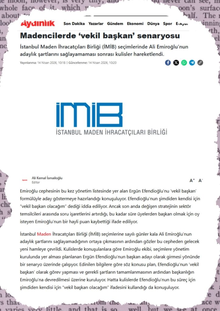 Çünkü bu kadar önemli bir kariyere sahip bir madencinin böylesi bir olaya mahal vermesini beklemezdim. İMİB gibi sektörün en önemli kurumunu yönetmeye talip bir başkan adayının, evrak yeterliliği olmadan yaklaşık on ay boyunca seçim kampanyası yürütmesi; yalnızca kendisinin değil, yönetim kurulunun ve en önemlisi sektörün ve yol arkadaşlarının vakit kaybetmesine yol açtı.