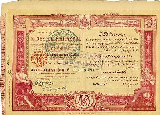 Osmanlı döneminde kurulan cumhuriyetin ileriki yıllarında devlet tarafından satın alınan Balya, Karasu, Denet ….şirketlerin hisse senetleri