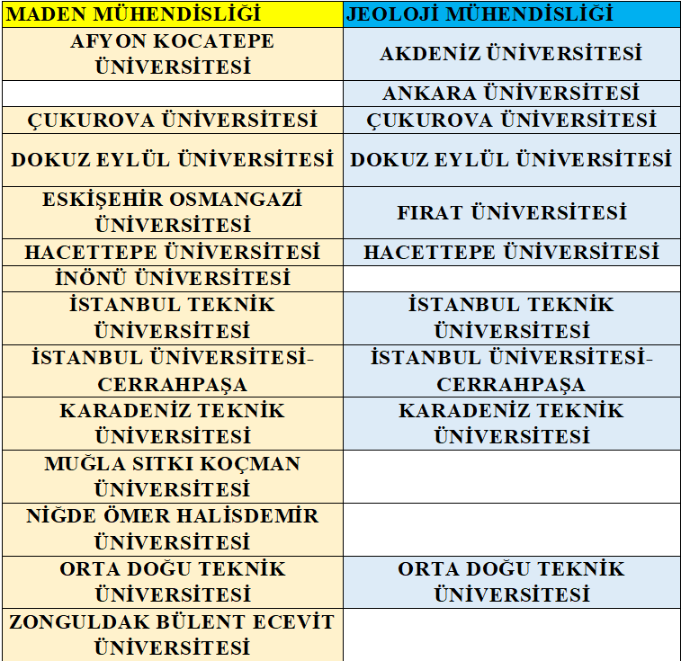MADEN ve JEOLOJİ MÜHENDİSLİK BÖLÜMLERİ (2023)